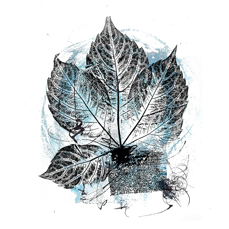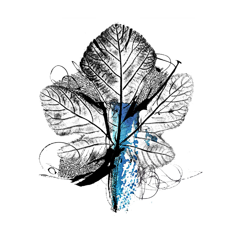 Yaprağın doğallığını ve dokusunu modern grafik öğelerle harmanlayıp, doğa ile insanın yaratıcılığı arasında etkileyici bir köprü kurmuşcasına çizilmiş bu eserler.Arka kısımlardaki soyut ve neredeyse yazımsal doku, eserin merkezine bilinçli bir karmaşa hissi eklemiş,Doğanın zarif düzeni ile insanın yaratıcı kaosu arasında şiirsel dengeyi hissettim burda…Çok yaratıcı bulduğum bir sergi oldu, Bilge yi yürekten tebrik ediyorum ve başarılarının devamını diliyorum.